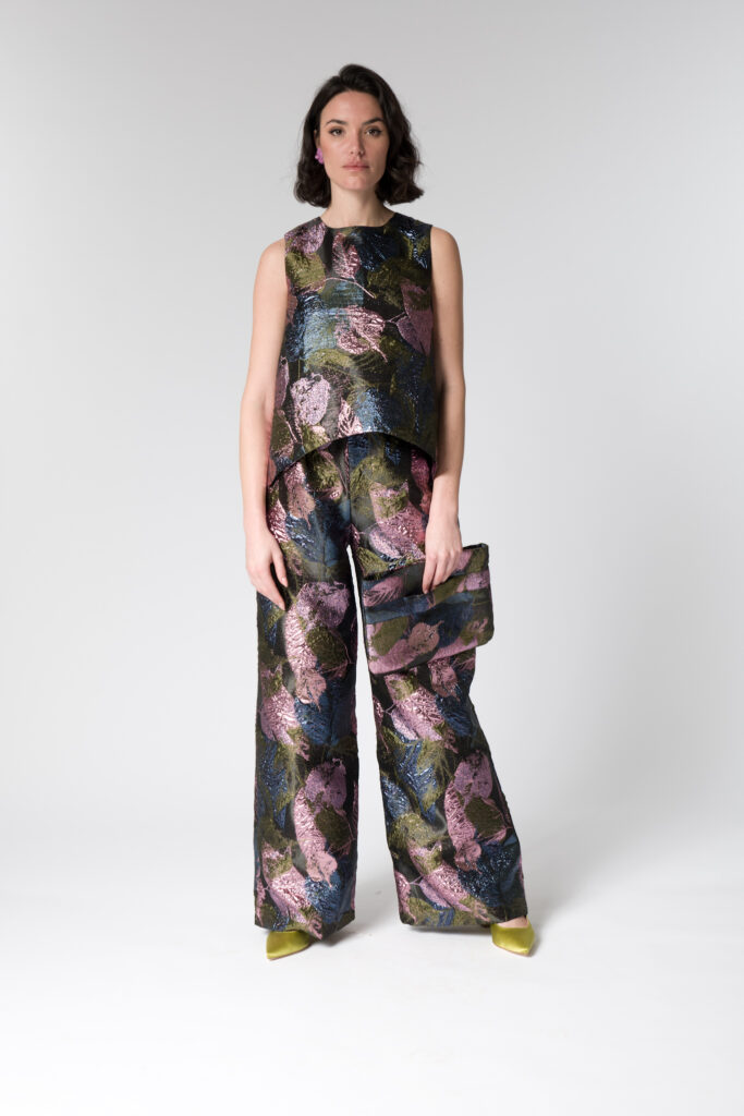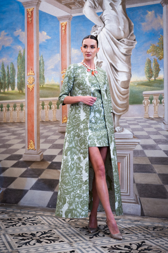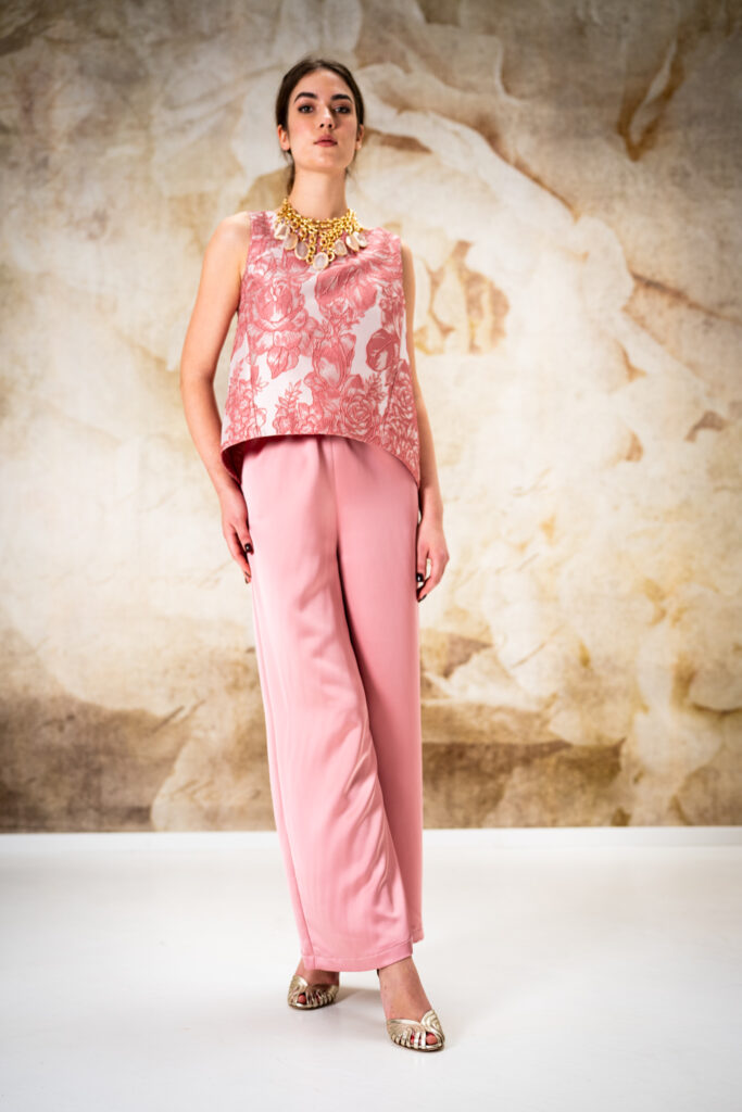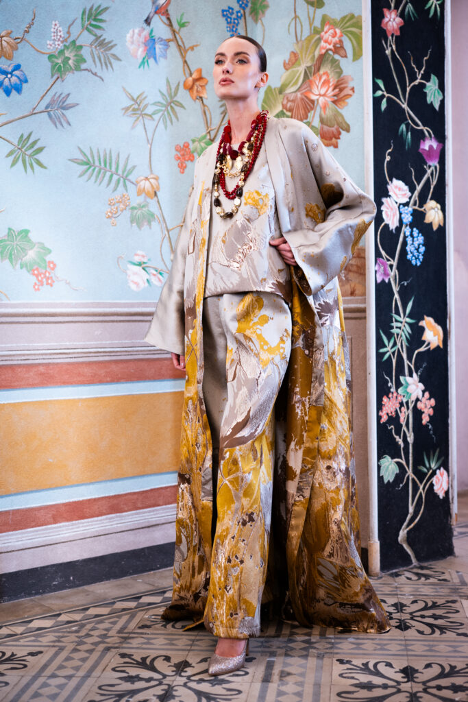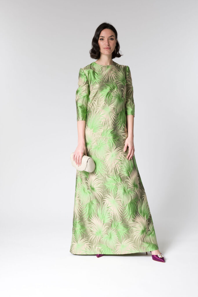 Questa collezione si rivolge alle donne che cercano abiti unici, capaci di unire raffinatezza e originalità, lontano dagli schemi tradizionali. Le meravigliose fantasie di satin, gobelin e jacquard arricchiscono ogni creazione, donando a ogni pezzo una personalità distintiva e affascinante. I tessuti, scelti con cura, si adattano perfettamente alle forme del corpo, creando silhouette fluide e armoniose.