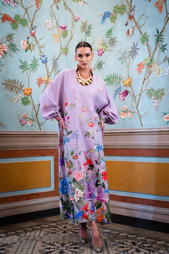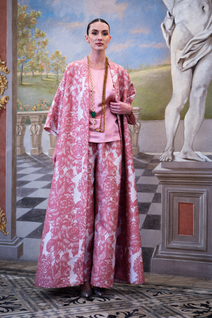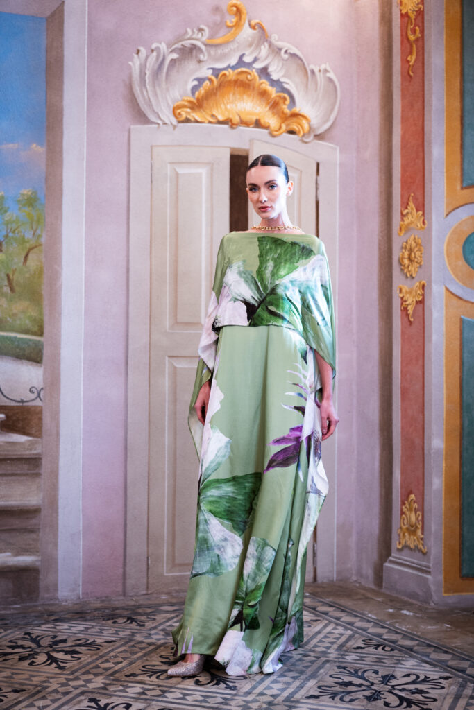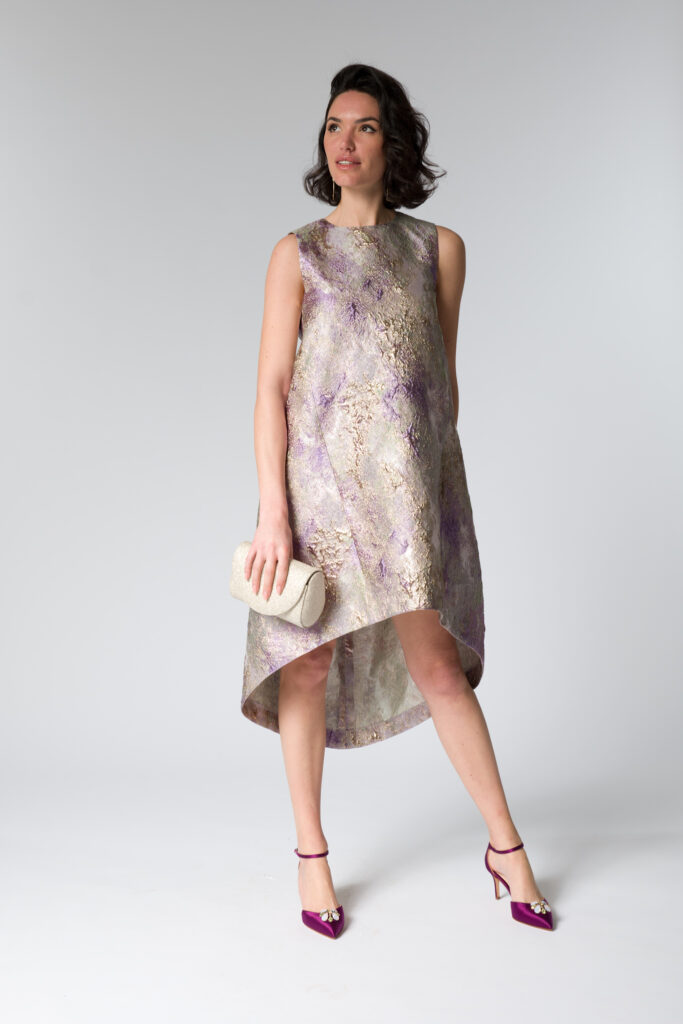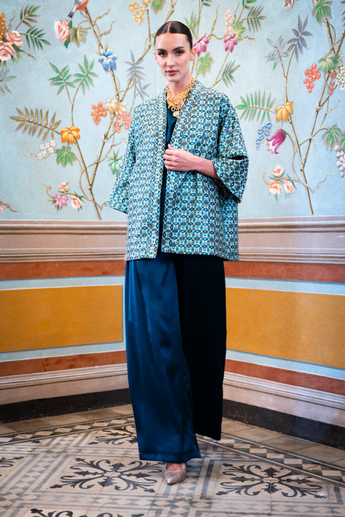 Questa collezione si rivolge alle donne che cercano abiti unici, capaci di unire raffinatezza e originalità, lontano dagli schemi tradizionali. Le meravigliose fantasie di satin, gobelin e jacquard arricchiscono ogni creazione, donando a ogni pezzo una personalità distintiva e affascinante. I tessuti, scelti con cura, si adattano perfettamente alle forme del corpo, creando silhouette fluide e armoniose.
