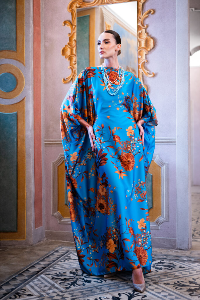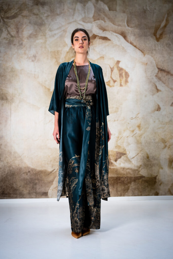 Ispirata a luoghi lontani e con un forte richiamo alle tradizioni orientali, la nuova collezione Party & Night firmata Fata Events si distingue per la sua eleganza sobria e sofisticata. La scelta di linee semplici e pulite esalta la femminilità in modo discreto, ma allo stesso tempo affascinante. Le preziose sete, utilizzate sia in versioni strutturate per i modelli più casual che in varianti morbide per Kimono e Kaftani, rendono i capi lussuosi e confortevoli.
